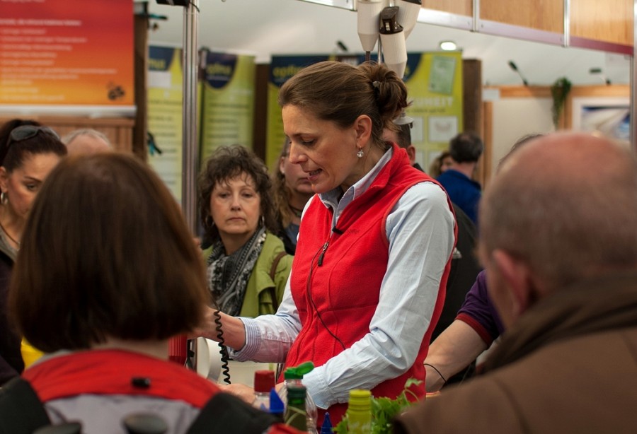 Es gibt die Menschen hinter und vor den Ständen, die ihre Region, die Spezialitäten ihrer Region und ihre Einrichtungen oder Organisation vorstellen wollen. Sie wollen ihre Region oder ihr Marktsegment bekannter machen. So z.B. die äußerst charmante Weinkönigin Lena aus Schriesheim, die zusammen mit ihren beiden Prinzessinnen Werbung für den Bergsträßer Wein macht. Weinkönigin wird man nicht so im Vorbeigehen. Man muss die Jury in einem Auswahlverfahren überzeugen. Das ist unserer Lena offenbar gelungen. Für ein Jahr ist sie die Weinkönigin, danach folgt ihr eine der beiden Prinzessinnen. Da ist aber auch der Verkaufsleiter der Winzerkellerei Wiesloch, die vorzügliche Weine in ihrem Sortiment hat.