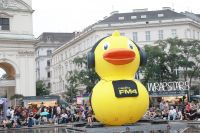 Dieses Wochenende fand das 16. Popfest in Wien statt. Als Herzstück und Open-Air-Aushängeschild strahlt die sogenannte „Seebühne" im Teich vor der barocken Karlskirche.