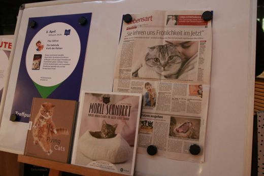 Katzen fungieren als Seelentröster und in manchen Situationen spenden sie uns therapeutische Kraft und sie machen uns glücklich. Dies beweist auch Elke Söllner (ausgebildete Tierpsychologin), in ihrem neuen Buch "Die heilende Kraft der Katzen", das sie heute in der Thalia Buchhandlung in der Mariahilferstrasse präsentierte. Sie hat sich in ihrer Arbeit, vor allem auf Katzen spezialisiert und bietet Beratung für Katzenbesitzer an. Sie weiß wie man mit den geliebten Samtpfötchen umgeht und von ihnen profitiert. Die besorgte Katze, ist ein weiteres Buch von Elke Söllner das bereits im Goldegg Verlag erschienen ist.