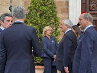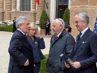 Marco Antonio Rubio, US-Außenminister, und Frau Jeannette Dousdebes Rubio nahmen am 17. Mai 2025 an einem privaten Abendessen in der Villa Madama in Rom mit dem Minister für auswärtige Angelegenheiten und internationale Zusammenarbeit Antonio Tajani und seiner Frau Brunella Orecchio teil.