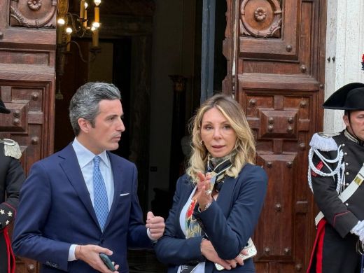 Marco Antonio Rubio, US-Außenminister, und Frau Jeannette Dousdebes Rubio nahmen am 17. Mai 2025 an einem privaten Abendessen in der Villa Madama in Rom mit dem Minister für auswärtige Angelegenheiten und internationale Zusammenarbeit Antonio Tajani und seiner Frau Brunella Orecchio teil.
