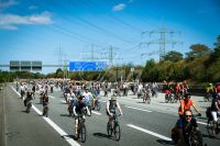 Vollsperrung der Bundesautobahn 66 am 28. August 2022 durch einen Demonstrationszug der Initiative Verkehrswende Hessen. Schätzungen der Veranstalter nahmen ca 7.000 - 10.000 Radfahrerinnen und Radfahrer teil. Die Demonstration galt als sehr umstritten, da zuvor die Autobahn GmbH gegen die Veranstalter ohne Erfolg geklagt hatte
