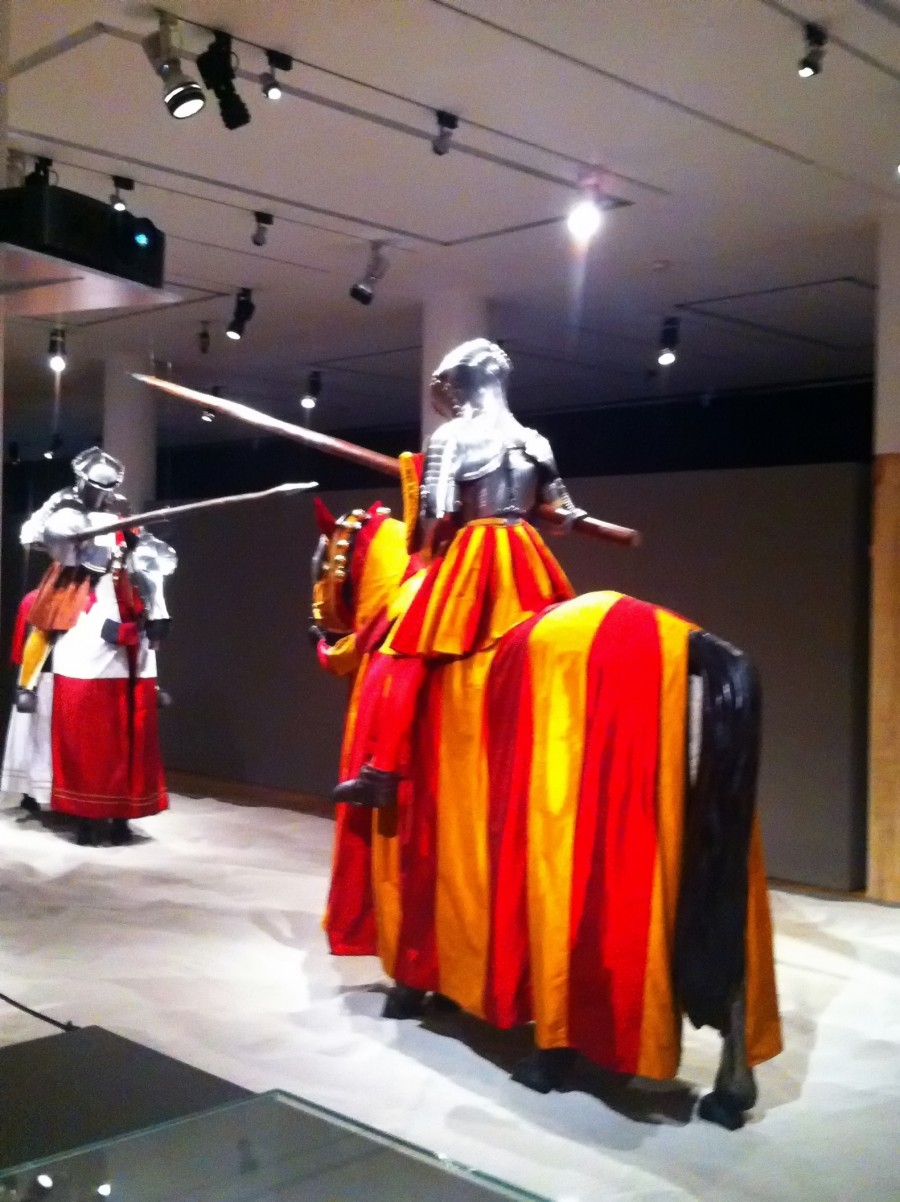 Das Kunsthistorische Museum Wien besitzt mehr als 50% des Weltbestands an Turnierausrüstungen. Die Rüstungen sind telweise 500 Jahre alt. Dass sie gehegt und gepflegt werden, sieht man. Sie sind in Top-Zustand. Wunderschöne Exponate aus der Gemäldegalerie, der Hofjagd- und Rüstkammer und der Kunstkammer sind bis November in Mannheim zu bestaunen. Die Ausstellung gliedert sich in drei Bereiche: Im ersten Bereich geht es um die Persönlichkeit Maximilians, um seine Familie und seine Kriegs-Aktivitäten, im zweiten Bereich um die höfische Jagd als Element im Spiel der Diplomatie und das höfische Turnier. Turniere hielten die Adligen zusammen, entwickelten und verstärkten ein Zusammengehörigkeitsgefühl. Bei den weit verstreuten Gebieten des Reichs ein durchaus wichtiger Faktor.
