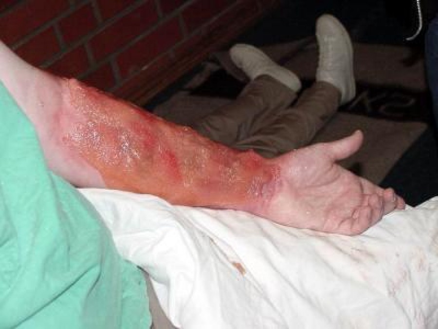 Bei Verbrennungen spielt es im medizinischen Sinn keine Rolle, ob Sie sich verbrühen oder ob Sie sich durch eine offene Flamme verbrennen. Bei einer Brandwunde wird die oberste Hautschicht zerstört beziehungsweise geöffnet. So haben Viren und Bakterien die Möglichkeit, in die Wunde einzudringen und diese zu infizieren. Schnell kann sich die Wunde entzünden. Deshalb ist es wichtig, dass Sie die Köperstelle unter kaltem fließenden Wasser halten - circa zehn Minuten. Dann sollten Sie ein sogenanntes Brandwundentuch im Haushalt haben (Apotheke). Benutzen Sie keine Hausmittel. Gehen Sie direkt zum Arzt, wenn die Wunde größer ist oder sich eine Wunde an sensiblen Hautstellen wie beispielsweise Gesicht oder Hände befindet. Besonders Kinder sind oft Feuer und Flamme, wenn sie ein bisschen Glut sehen. Achten Sie auf Ihre Kinder.