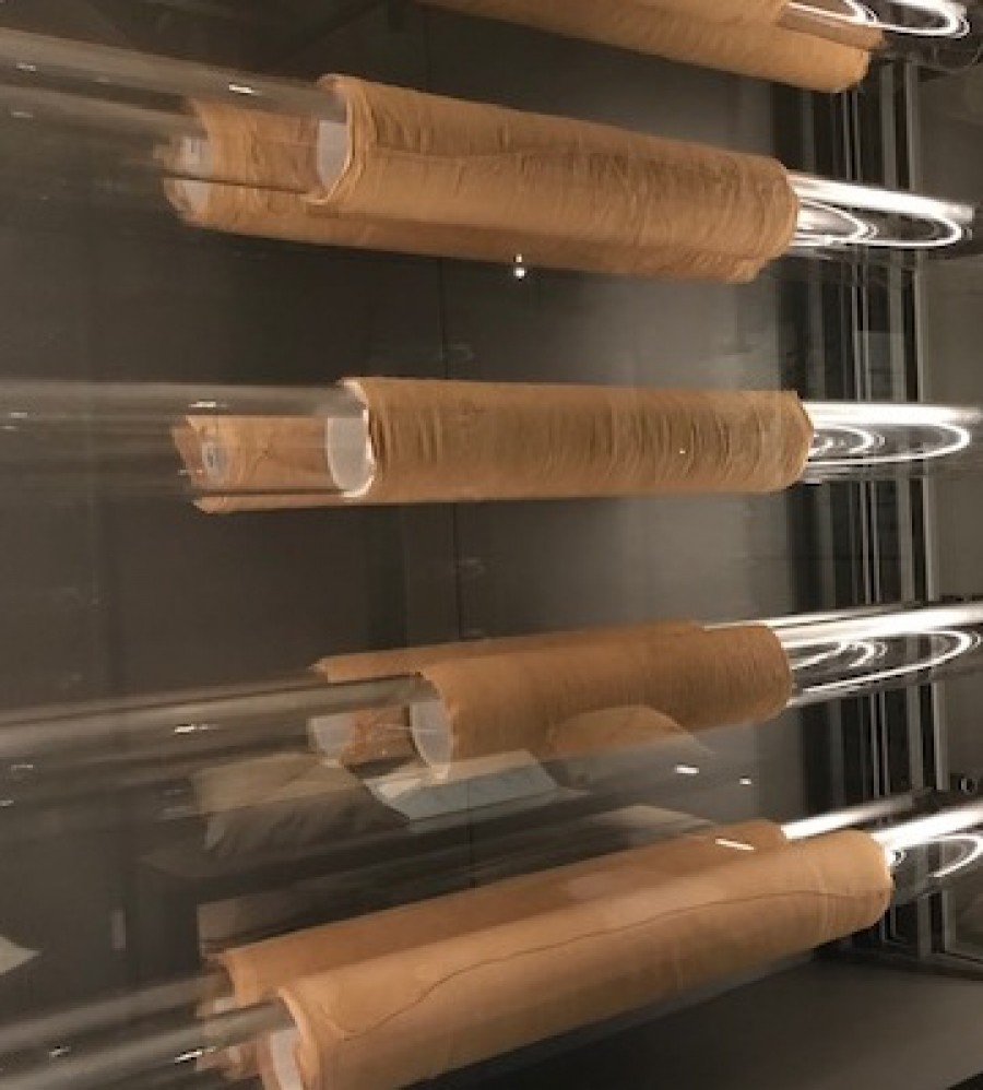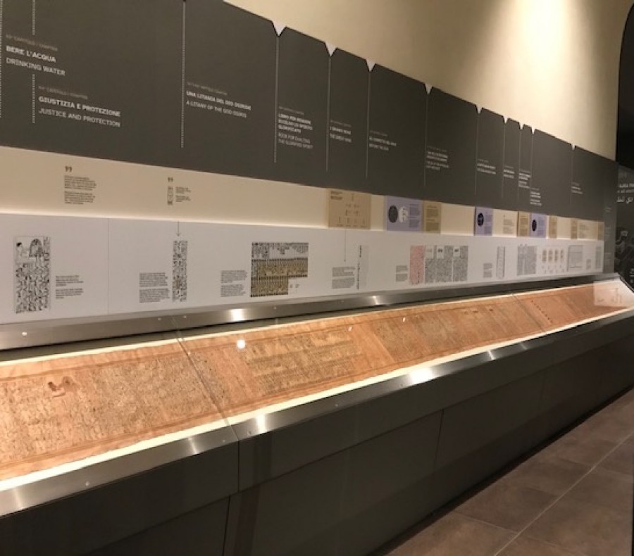 Vitrine mit Papyrusseiten des Totenbuchs