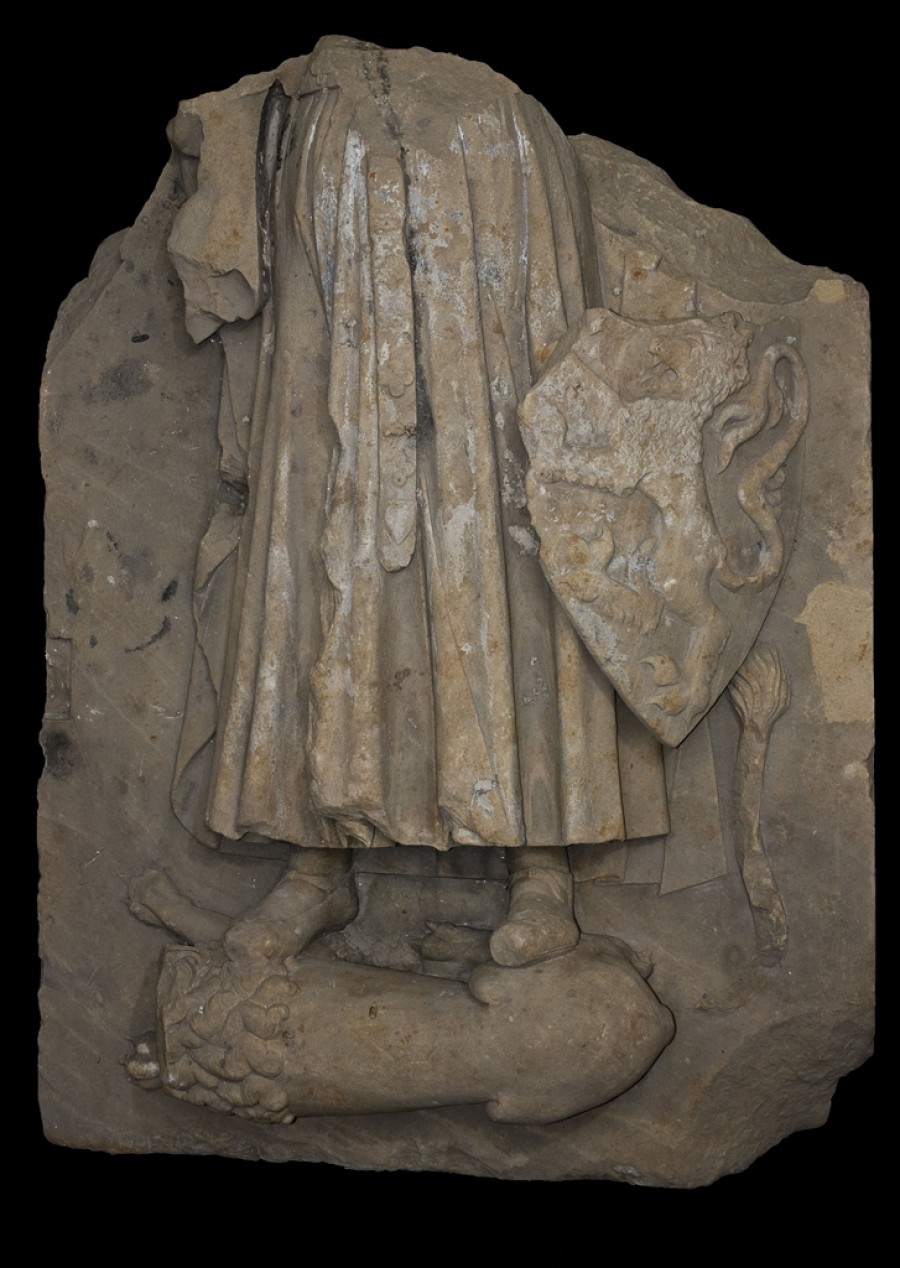 Im Gewölbekeller des Museums sind Grabplatten und Gewölbeschlusssteine als Zeitzeugen zu sehen. Das wichtigste Exponat ist die zum Teil erhaltene Grabplatte von Pfalzgraf Ludwig II. Die meisten Ausstellungsstücke stammen aus dem Kreuzgang des früheren Augustinerklosters, so die Grabplatte eines Augustinermönchs, die Grabplatte des Priors des Mönchsordens Johannes Molitor. Bei den Ausgrabungen wurden auch Grabplatten von Bürgerfamilien einschließlich Kindern gefunden. Gut erhalten sind Gewölbeschlusssteine mit dem kurpfälzischen Wappen und mit dem Reichsadler. Am heutigen Karlsplatz in Heidelberg stand früher ein Franziskanerkloster. Dort ließ sich Friedrich der Siegreiche in einem Doppeldeckergrab beisetzen.