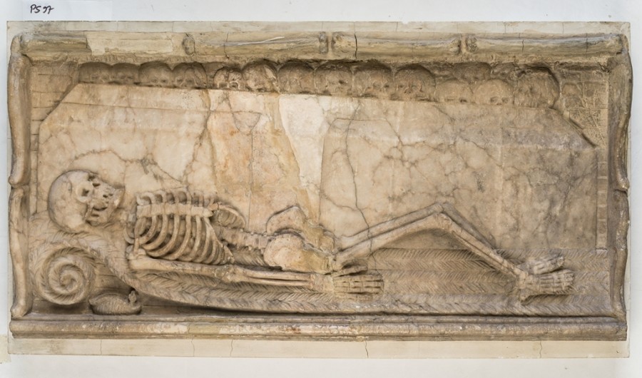 Das Marmorrelief des Totengerippes, das mit großer Wahrscheinlichkeit die Abdeckung für eine hölzerne Lade mit den Überresten Friedrichs war ist im Lapidarium ebenfalls zu besichtigen. Eine spannende Geschichte verbirgt sich hinter dem ausgestellten Zinnsarg. Dorothea von Dänemark ist nach ihrem Tod nach Heidelberg überführt worden. Von der Überführung gibt es ein Aquarell. Sie wollte in der Heiliggeistkirche neben ihrem Mann beigesetzt werden. Nach der Aufbahrung im Schloss wurde der Leichnam in Damasttücher eingewickelt und der Zinnsarg verlötet. 1979 bei Bauarbeiten in der Heiliggeistkirche wurde der Sarg gefunden. Im Sarg, eingewickelt in eine Brokatdecke fand man das Skelett von Dorothea von Dänemark. Leider konnten die Überreste wegen eines Pilzbefalls nicht weiter untersucht werden.