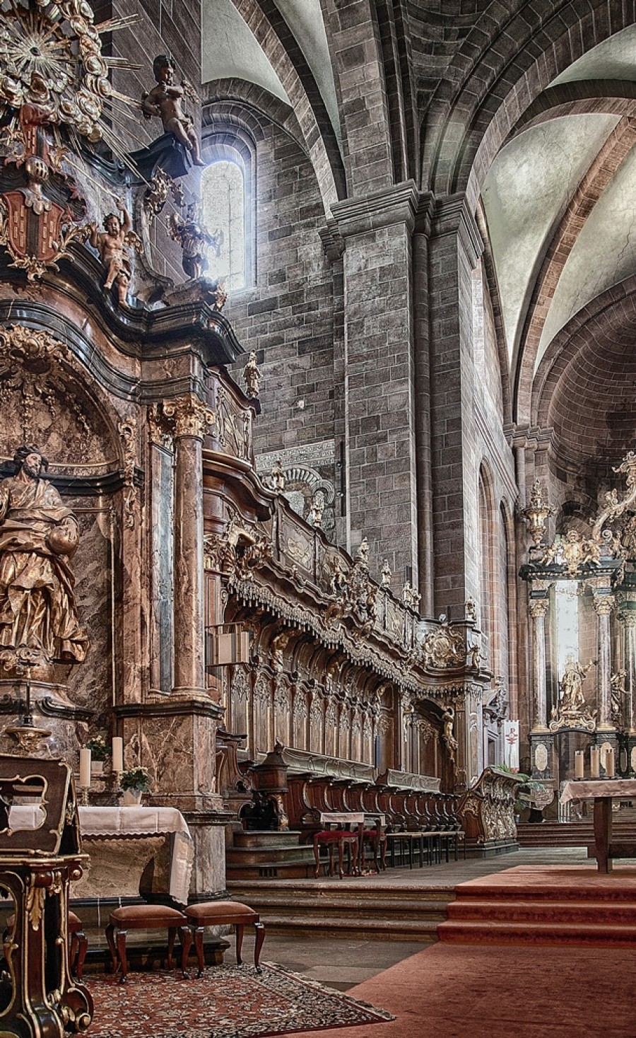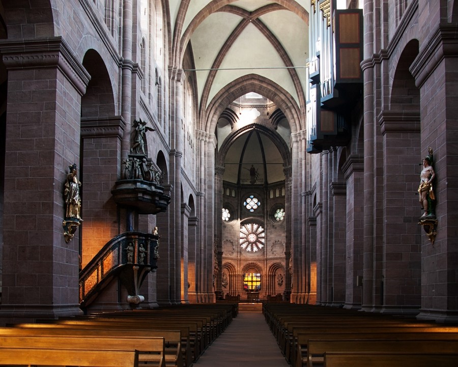 100 Meter über dem Meeresspiegel auf dem höchsten Hügel der Stadt Worms entstand um 1200 der Dom St. Peter. Erbaut wurde er auf den Grundmauern einer frühromanischen Kathedrale.Der Dom verfügt über 4 Türmen und 2 Kuppeln, erbaut in mehreren Bauphasen. Neben den Domen von Mainz und Speyer ist der Dom St. Peter eine der bedeutendsten romanischen Kirchen Deutschlands. Auch der Dom wurde in den Pfälzischen Erbfolgekriegen geplündert und zerstört. Der Großteil des Innenraums wurde im Barockstil wieder aufgebaut. Der barocke Hochaltar wurde z.B. von 1738 bis 1740 von Balthasar Neumann geschaffen. Die Saliergruft als Grablege der Angehörigen des salischen Königshauses und die Taufkapelle sind weitere einmalige Schätze des Doms St.Peter.
