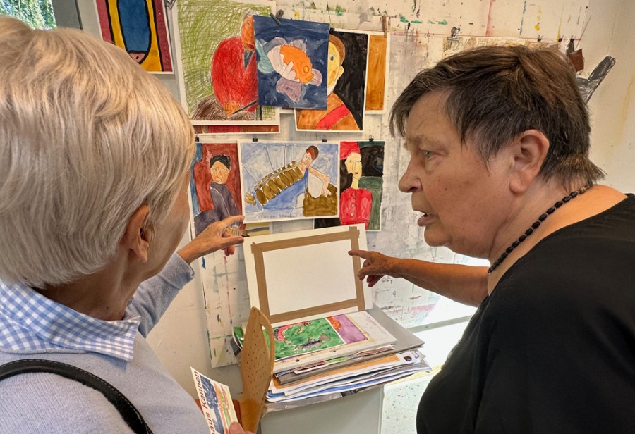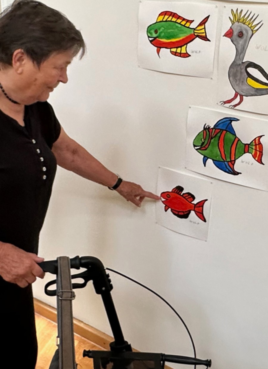 Wir verließen die Ausstellung nicht nur mit neuen Eindrücken, sondern auch mit einer gestärkten Überzeugung, dass Kunst ein mächtiges Werkzeug sein kann, um Verbindungen zu schaffen und Ausdrucksmöglichkeiten zu erweitern. Auch wir wurden von dem Kunsthaus Kannen und der Ausstellung derartig inspiriert, sodass der Wunsch entstand, neben den von der Einrichtung Tagespflege angebotenen Unterhaltungsprogrammen wie Musik, gemeinsamem Singen, kognitiven Übungen wie Rätseln und körperlichen Ertüchtigungen auch Malen und Basteln in unser Repertoire aufzunehmen. Die Idee, ein Kunstatelier zu schaffen, erhielt neuen Schwung, und wir erkennen nun noch deutlicher, wie kreativer Ausdruck ein Fenster zu Freude, Verbindung und persönlicher Entfaltung sein kann.