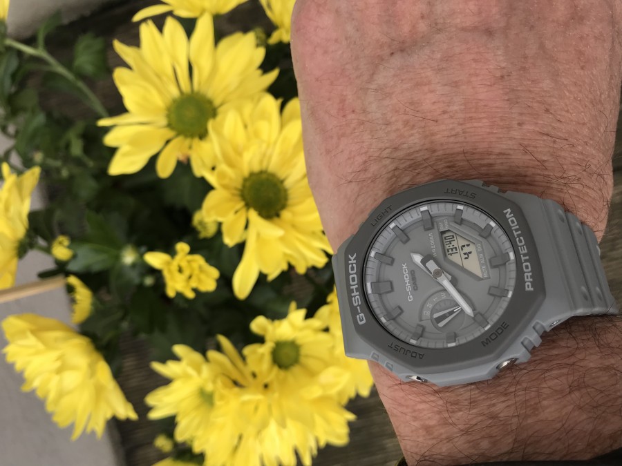 Die Uhr wird für knapp 1000 Euro angeboten, doch als Erstkäufer bekommt der Kunde 10 % Rabatt. Eine weitere äußert zuverlässige und gegen alle Höhe und Tiefen gewappnete Uhr ist die Casio G-Shock GA- 2110 ET-8AER in grau. Batteriedauer drei Jahre, also genug bis zur nächsten Pandemie, zeigt bis zu acht weiteren Zeitzonen, ist deutlich flacher und damit alltagstauglicher als die meisten G-Shocks,verfügt auch über eine analoge Anzeige, und die coole graue Farbe ist schon ein Hingucker. Kann nicht schaden, nachdem wir alle erst wieder die Annäherung an andere Menschen neu lernen müssen. Und falls die Zeiten noch härter werden, 10 Euro Batterie, und knapp 110 Euro Kaufpreis sind machbar.