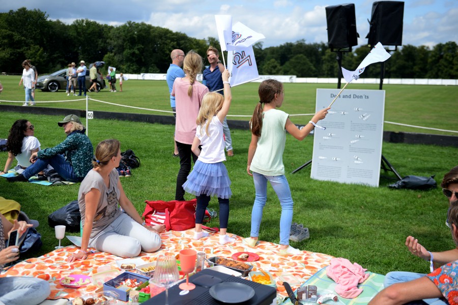 Unter vielen Auflagen entstand eine Anlage, die sowohl Pferd als auch Reiter optimal unterstützt, um beste Bedingungen zu bieten. Während die argentinischen Polopferde und ihre Reiter auf dem Spielfeld brillierten, hatten die Gäste die Möglichkeit, auf dem Hugerlandshofgelände Platz zu nehmen. Ihre Picknickdecken breiteten sie aus, um die reichhaltige Auswahl an regionalen Köstlichkeiten und internationalen Gaumenfreuden zu genießen. Zwischen lebhaften Gesprächen und herzlichem Lachen wechselte der Himmel zwischen strahlendem Blau und einem kurzen, erfrischenden Gewitterschauer. Die Atmosphäre war von Freundschaft und Gemeinschaft geprägt, während Kinder fröhlich auf dem grünen Rasen spielten.