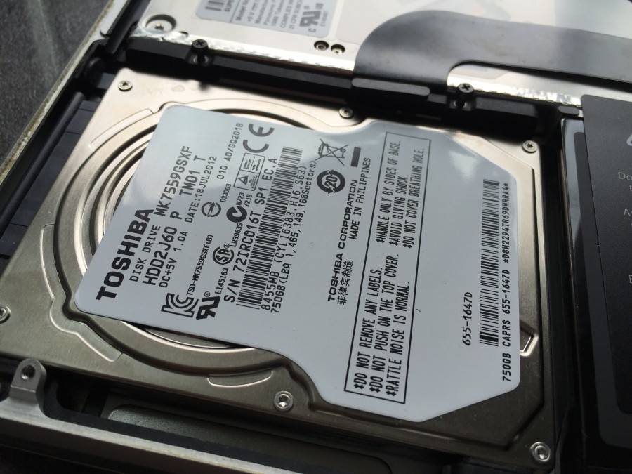 Die Festplatte in einem MacBook oder MacBook Pro ist für einen Geübten in weniger als drei Minuten ausgebaut. Die Demontage der Bodenplatte des Laptop dauert keine zwei Minuten, der Ausbau der Festplatte weniger als eine Minute. Für den Laien ist der Ausbau der Festplatte in weniger als fünf Minuten realistisch. Nach dem entfernen der Bodenplatte, die bei den meisten Modellen mit zehn Schrauben befestigt ist (Spezialwerkzeug erhältlich für ca. 10,- EUR) die nur fingerfest angezogen sind ist die Festplatte schnell lokalisiert. Um die Festplatte auszubauen sind nur noch weitere zwei von vier Schrauben zu lösen und das SATA Kabel (gesteckt) zu ziehen. Anschließend kann die Hardware mit wenigen Tests sicher getestet und der Fehler wahrscheinlich eingekreist werden.
